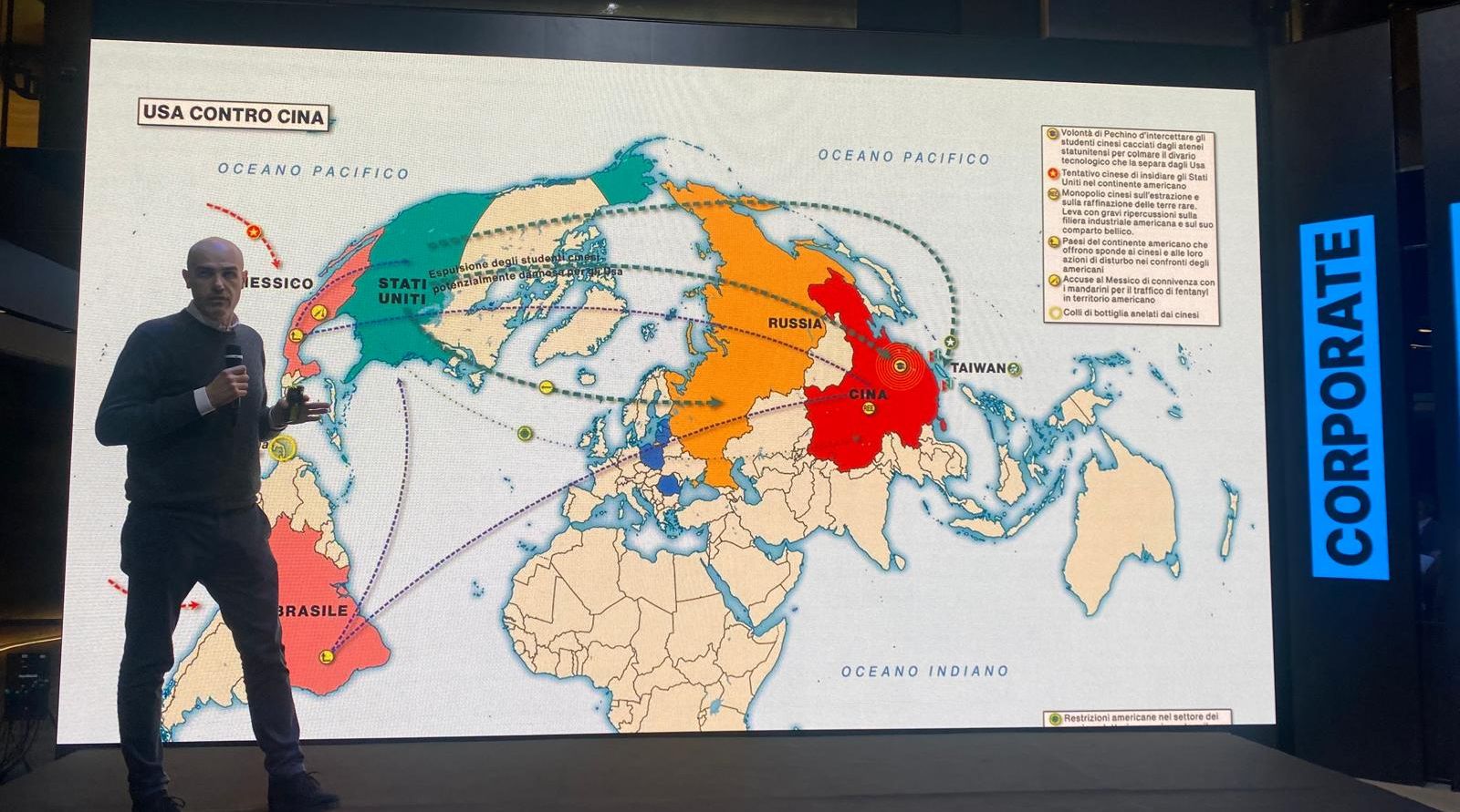 Dario Fabbri (foto sotto) viene introdotto da De Angelis con un chiaro, “è un momento geopolitico instabile, che porta una forte pressioni sui costi e sui margini delle organizzazioni in questo momento complesso“.