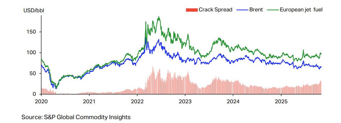 Con la riduzione della capacità di raffinazione, l’Europa diventa sempre più dipendente dalle importazioni. Anche prima della guerra in Medio Oriente, le compagnie aeree avevano segnalato che il blocco stava affrontando un deficit strutturale di cherosene, dovuto in parte alle sanzioni sul petrolio russo e al calo della capacità di raffinazione europea. La produzione europea di carburante per aerei dipende dalle importazioni di greggio, principalmente dal Medio Oriente.