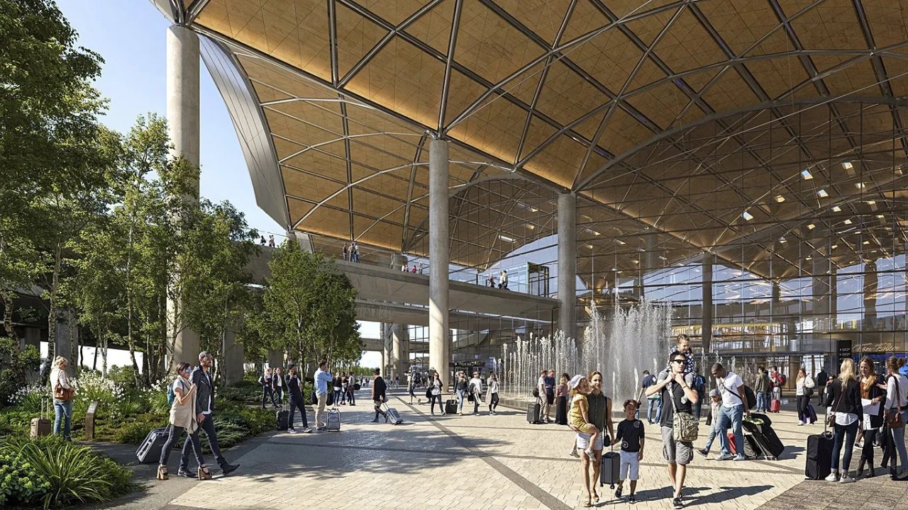 Il masterplan prevede anche una grande piazza di interscambio lato terra, concepita come uno spazio aperto e luminoso, “animato da una vegetazione rigogliosa e inondato di luce naturale“. Un’area pensata non solo per facilitare i flussi di passeggeri, ma anche come luogo di incontro per chi parte e per chi accoglie i viaggiatori.