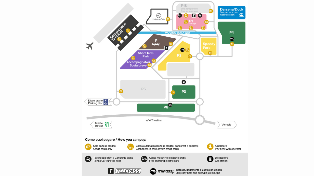 Se cerchi il massimo risparmio, i parcheggi “off-airport” situati lungo via Triestina offrono tariffe imbattibili e servizi inclusi.