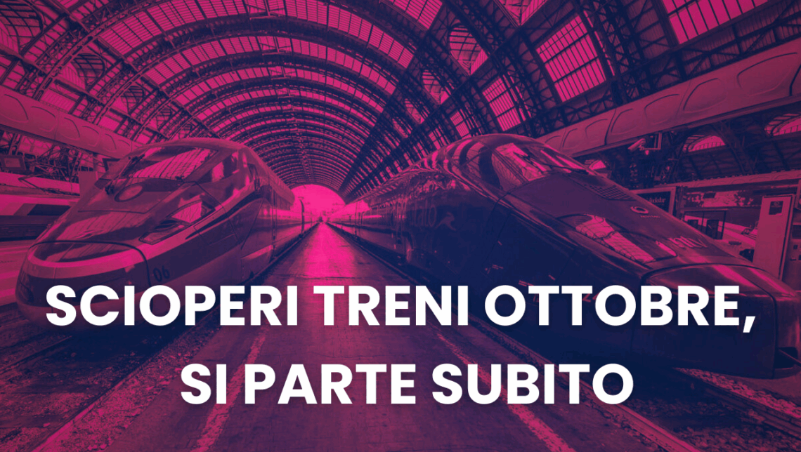 Il mese di ottobre si preannuncia difficile per chi viaggia in treno: previsti uno sciopero nazionale di 24 ore e un’agitazione che coinvolgerà tutto il personale del Gruppo FS, Italo e Trenord